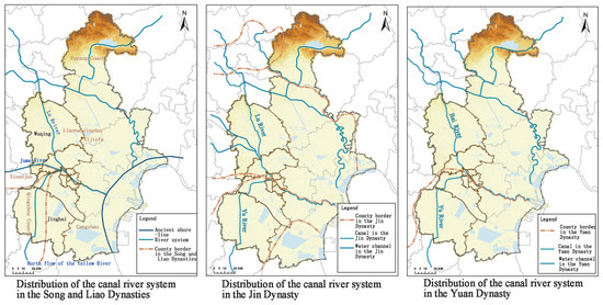 3.3. The Development Period (AD916–AD1368) of the Settlement Space along the Canal: The Song and Liao Dynasties (AD916–AD1276), the Jin Dynasty (AD1115–AD1234) and the Yuan Dynasty (AD1206–AD1368)