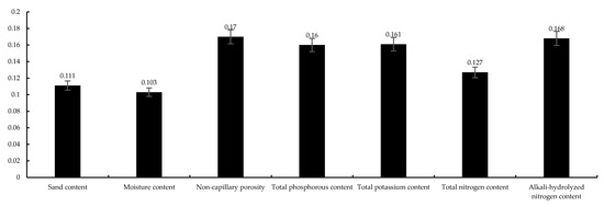 | Nutrient type | Organic matter content (g·kg−1) | 18.54 ± 3.28 | 11.69 ± 2.10 | 16.08 ± 2.25 | 27.74 ± 2.16 | 5.55 ± 0.98 | 47.29 |