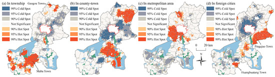 The analysis results were generally normalized and recorded as Z (Gi*). The larger the value of Z (Gi*), the greater the level of cold-spot (low–low clustering) and hot-spot (high–high clustering) areas.