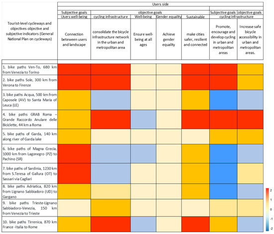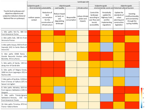 To fill the knowledge gaps in the literature, this research aims to create evaluation indices for users’ perceptions of the landscape and to apply a mixed evaluation method, to assess soft mobility infrastructure in Italy. This study enriches the literature on cycling infrastructures, offering an overview of Italy, applying a method that is rarely used in decision-making processes.