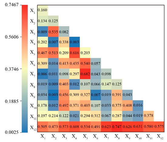 Interaction factor detection is the greatest advantage of geographical detectors compared to other statistical methods. It can detect the interaction between two variables and determine the direction and manner of interaction between two factors by comparing the magnitude of single-factor q values and double-factor q values. The judgment basis for interaction was shown in Table 4.