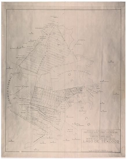 Lake Texcoco Plan and location of ejidos on the basin of the former Lake Texcoco. Flores, Miguel, 1936 [51].