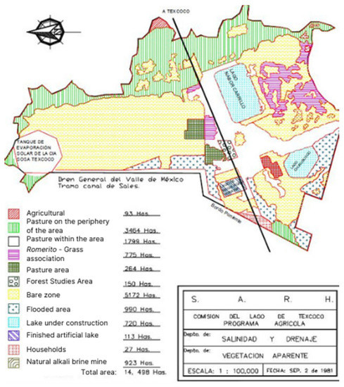 - Flores, M. Plano Del Lago de Texcoco y Localización de Ejidos [Plano] 1:40,000. Available online: https://mapoteca.siap.gob.mx/index.php/cgf-mex-m10-v6-0566/ (accessed on 10 May 2022).