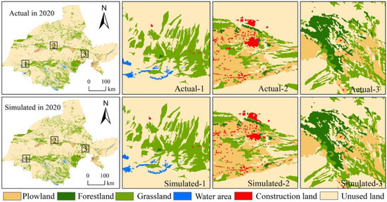 Comparison between land use simulation results and actual data in 2020.