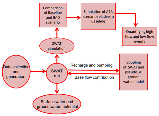 The study aims to evaluate the water resources in the Chennai River catchment using the SWAT-FEM simulation model under present and future land use land cover and climate, as shown in Figure 1. They provide insights into how the variability in climate conditions alters the spatiotemporal hydro-climatic responses in catchment scales. The research methodology adopted to achieve the aim of the study is classified into the following tasks: