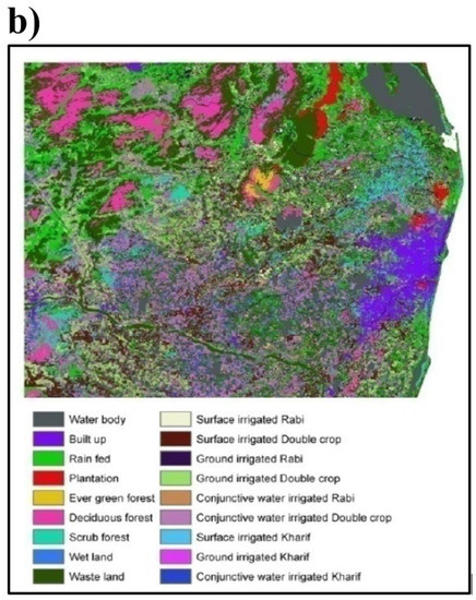 - NRSC. Data from: Geophysical Products/Land Products. Indian Space Research Organization: Natural Remote Sensing Centre (NRSC) Database. 2018. Available online: https://nrsc.gov.in/Geophysical_Products (accessed on 17 May 2018).