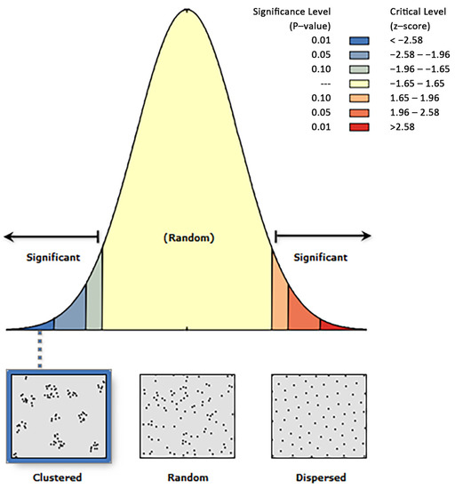 - Anselin, L. Local Indicators of Spatial Association—LISA. Geogr. Anal. 1995, 27, 93–115. [Google Scholar] [CrossRef]