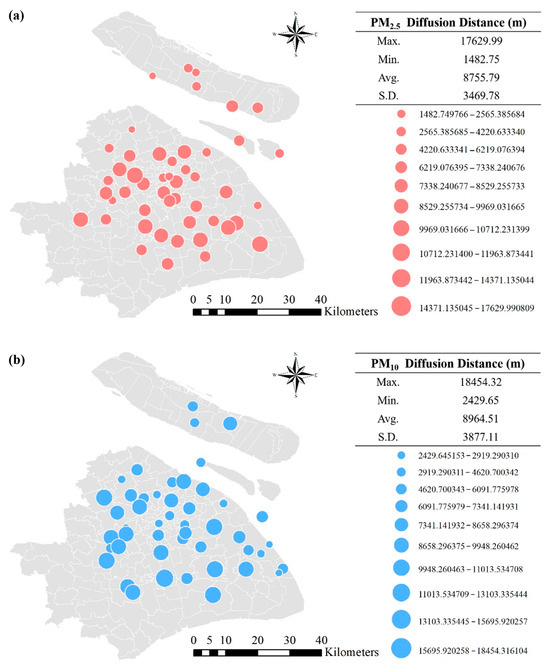3.3. Descriptive Statistics of the PM2.5 and PM10 Diffusion Distance