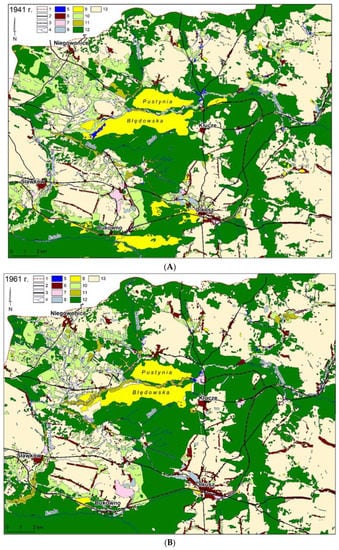 - Szczypek, T.; Wach, J.; Wika, S. Zmiany Krajobrazów Pustyni Błędowskiej; Wydział Nauk o Ziemi Uniwersytetu Śląskiego: Sosnowiec, Poland, 1994. [Google Scholar]
