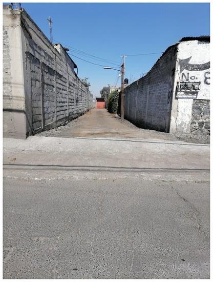 Due to the effects deriving from the overflowing of the Barranca Seca, the population of San Antonio Tecómitl has autonomously built elevations at the entrance to the roads to prevent the entry of water during the rainy season, which runs from July to September (Figure 14).