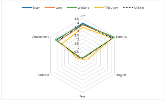 Distribution of mean emotional experiences across waterscape settings.