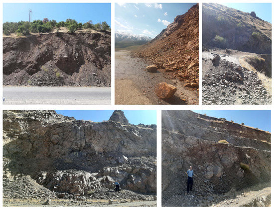 Different types of landslides observed along the Saqqez-Marivan road in the Kurdistan Province of Iran.