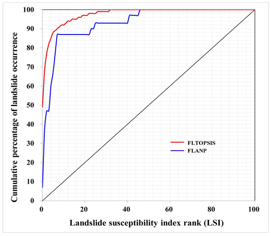 We discussed the FLTOPSIS method and showed that it outperformed the FLANP methods in assessing landslide susceptibility. As TOPSIS is an easily understandable and programmable calculation technique, it is more popular and has therefore been widely used by researchers in some fields of study. In fact, it can account simultaneously for various criteria with different units of measurement [93], and therefore overcome the weak points of fuzzy logic including normalization and compatibility between the weights [94]. Additionally, TOPSIS has attempted to combine MCDMs with other methods such as fuzzy theory to solve uncertainty and ambiguity relating to expert judgement [95].