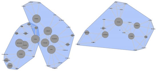 - Collar, A.; Coward, F.; Brughmans, T.; Mills, B.J. Networks in Archaeology: Phenomena, Abstraction, Representation. J. Archaeol. Method Theory 2015, 22, 1–32. [Google Scholar] [CrossRef]