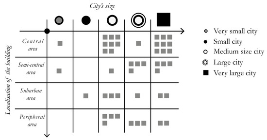 The sample underscores that a large part of the experiences is located in the central or semi-central area of the cities (64%); the other portion is located in suburban or peripheral areas, despite the size of the cities (Figure 2).