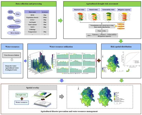 Drought is a recurring natural disaster that can destroy agricultural production, economic development, water resource utilization and the ecological environment, causing higher financial losses in the long run than any other meteorological disaster [1,2,3,4]. Droughts can negatively affect agricultural production and sustainable development by exacerbating water scarcity through surface water and groundwater resource depletion [5,6]. The direct economic losses caused by drought-related disasters in China were approximately CNY 90.971 billion in 2014 [7], and the frequency and intensity of droughts are constantly rising due to human activities and the variability of hydro-meteorological variables caused by climate change [8,9,10]. Therefore, understanding the spatial pattern of agricultural drought risk (ADR) is essential for alleviating the adverse consequences of agricultural drought and guaranteeing regional food security.
