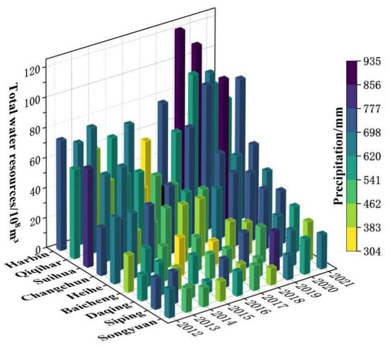 Figure 8. Total water resources and precipitation in Songnen Plain.