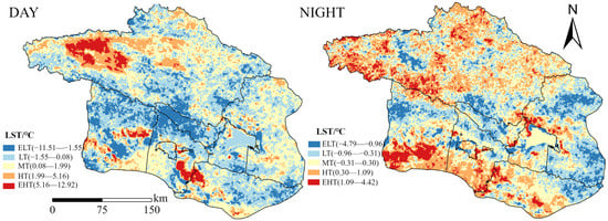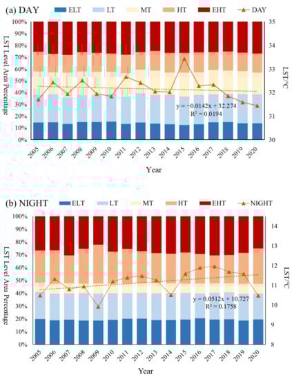 4.1. LST Spatiotemporal Distribution and Its Changing Trend