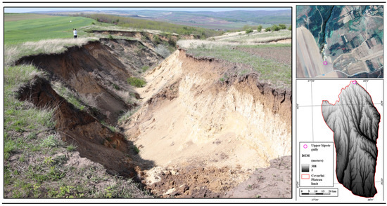 One of the primary challenges confronting the agricultural sector in the Moldavian Plateau is the issue of soil loss due to gully erosion. This phenomenon has significant implications for the sustainability and productivity of the region’s agricultural land, posing a major concern for stakeholders in the sector, and represents a major threat to life, property, and infrastructure [1,2,3]. Gully erosion is considered one of the leading causes of sediment yield resulting from water erosion and unsustainable land management [4] and is commonly associated with both on-site and off-site impacts [2,5,6], such as terrain fragmentation, reduced trafficability [5] negative impacts on the hydrological functioning of catchments [7] and decreasing water quality and availability [6].