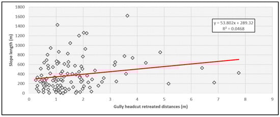 Plot of Slope length values to gully head-cut retreated distance per year.