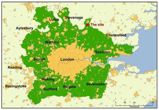 Information on the study area (use “the site” in the following text) was collected mainly by desktop studies at the first stage. Located north-northeast of the London Green Belt (Figure 3), the site occupies approximately 1.18 ha in the village of Spellbrook, Bishop’s Stortford, within the local authority area of East Hertfordshire District Council.