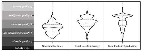 - One-dimensional quality (O): Facilities that residents expect to have. The provision of these facilities will satisfy the residents, while the absence of such facilities will make the residents feel dissatisfied; however, they can tolerate such an absence.