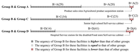 Comparative analysis chart of the urgency of Group B’s needs versus the other three groups.