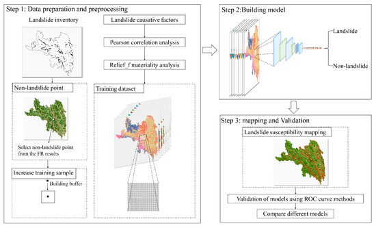 In this study, we used the Changdu region as an example to construct a landslide susceptibility model based on CNN, aiming to investigate the rationality of non-slip sample selection and the applicability of deep-learning methods in LSM. Non-landslide samples were selected using the FR model, and based on this, resampling operations were performed on landslide and non-landslide samples to generate model training data. In addition, samples selected using the random sampling method are used to build models by applying FR, multilayer perceptron (MLP) neural networks, and SVM to verify the feasibility and effectiveness of the resampling operation based on FR selection in deep learning.