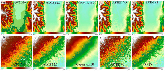 - Li, H.; Zhao, J.; Yan, B.; Yue, L.; Wang, L. Global DEMs vary from one to another: An evaluation of newly released Copernicus, NASA and AW3D30 DEM on selected terrains of China using ICESat-2 altimetry data. Int. J. Digit. Earth 2022, 15, 1149–1168. [Google Scholar] [CrossRef]