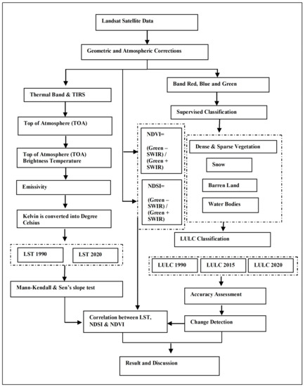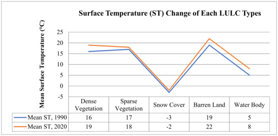 - Kumar, P.; Husain, A.; Singh, R.B.; Kumar, M. Impact of land cover change on land surface temperature: A case study of Spiti Valley. J. Mt. Sci. 2018, 15, 1658–1670. [Google Scholar] [CrossRef]