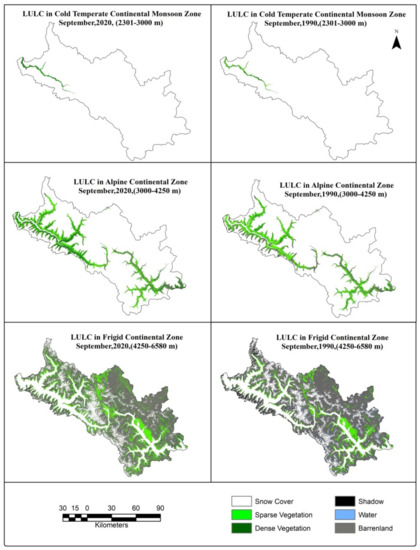 5.4. Land Use/Land Cover Change with Altitudinal Zones