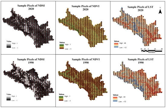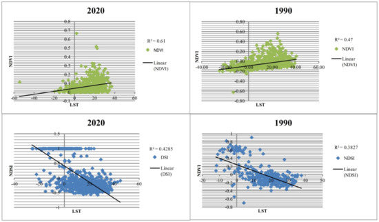 5.7. The Relationship of LST with NDSI and NDVI