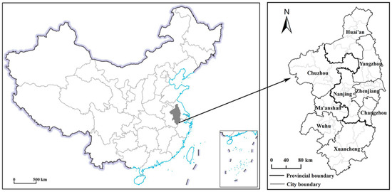 The NMA, an integrated development region centered on Nanjing, is located in the eastern part of China and in the central area of the urban belt that extends along the middle and lower reaches of the Yangtze River (Figure 2). Among the existing MAs in China, the NMA is highly representative in terms of construction history, construction significance, and development maturity.