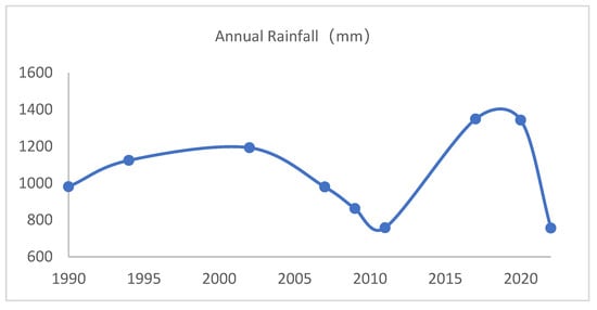 The advancement of urbanization was a strong contributor to landscape change. Rural construction and economic development also affected surface landscape change. Urban expansion and activities characterize the study area, as part of it is located in the suburbs of the city, while another part is an urban development space. The watershed not only serves as an important drinking water source protection site for the city but also as an important urban ecological protection space and agricultural development space, and it is increasingly under the dual pressure of ecological protection and economic development (Figure 3).