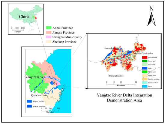The location and land cover/use of the Yangtze River Delta Integration Demonstration zone.