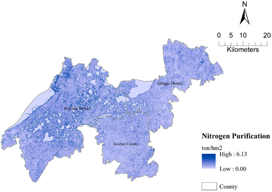 Water Purification Service (Total Nitrogen) of the ‘two Districts and One County ‘in the Yangtze River Delta Ecological Green Integration Demonstration Zone (2020).