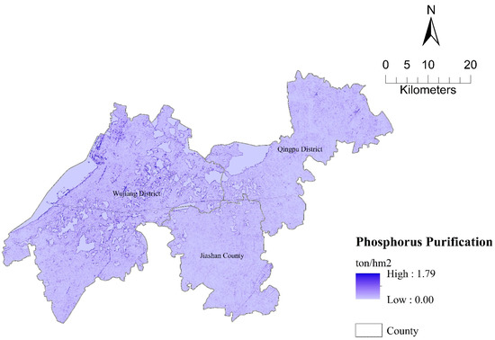 Water Purification Service (Total Phosphorus) of the ‘two Districts and One County ‘in the Yangtze River Delta Ecological Green Integration Demonstration Zone (2020).