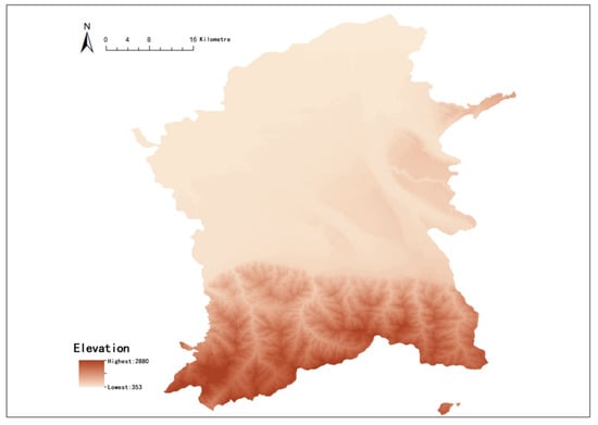 We used ArcGIS to process DEM data and obtained the elevation, slope, and other related parameters of Xi’an’s main urban area.