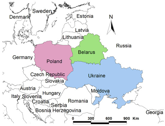 As mentioned above, individual countries face serious divergences and problems [39,40,41]. Acts regarding spatial planning frequently determine the legal order incorrectly or inadequately to the needs. Strategic documents also show varied levels and are often largely irrelevant for lower levels of planning. This situation aggravates numerous problems regarding spatial planning systems existing in individual countries. Countries similar to one another in certain terms and differing in others constitute particularly interesting material for comparisons. These criteria are met by Belarus, Ukraine, and Poland.
