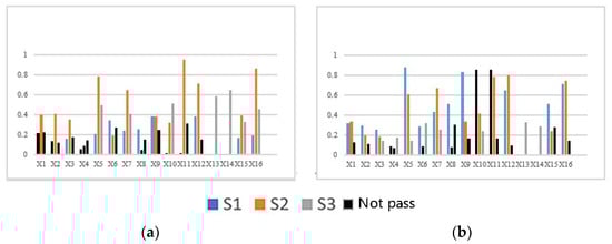 Based on the q-values for each stage (Table 6, Table 7, Table 8 and Table 9), the contribution rates of natural environmental factors (X1–X3) remained consistently low (14 to 43%), indicating that climate conditions and terrain played a fundamental constraining role in the conversion process. Transportation and location factors (X4–X6) had significant effects in the early and middle stages (13 to 90%). Economic factors (X9–X13) had generally high q-values and showed pronounced stage-specific changes, indicating their key driving role. Social factors (X7–X8) and policy factors (X14–X15) had a more prominent influence on the mutual conversion between “ecological” and “agricultural” spaces. The q-value for cultural factors (X16) declined significantly in the later stage, suggesting a decrease in their impact (Figure 6). This indicates that human factors exhibit strong spatial and temporal heterogeneity in their effects.