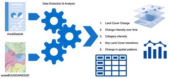 Hereafter, we present the study area, the data, and the different analytical steps to determine Land Cover change spatiotemporal patterns (Figure 1). The overall objective is to produce a comprehensive assessment of Land Cover Change (LCC) at the national and regional scales over the entirety of Switzerland, and distinguish between random and systematic changes, as well as quantifying change in spatial patterns.