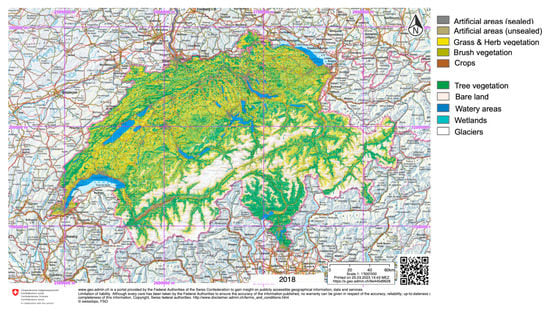 The ArealStatistik visualized on the mapping platform of the Swiss Confederation (https://s.geo.admin.ch/9e445b6a6c, accessed on 28 March 2023).
