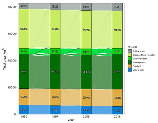 - Cuba, N. Research Note: Sankey Diagrams for Visualizing Land Cover Dynamics. Landsc. Urban Plan. 2015, 139, 163–167. [Google Scholar] [CrossRef]