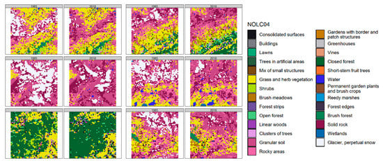 It can be further argued that analysis of LUCC benefits from a consideration of different spatial scales, as landscape patterns sometimes show a high degree of variability depending on the spatial scale used [], and dynamic but small-sized landscape areas can contribute greatly to observed changes. The relatively coarse spatial resolution of the ArealStatistik may mean that this dynamism is not fully captured. Refining LC data to a smaller spatial resolution facilitates the capture of processes occurring at the scale of human activity [].