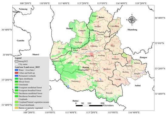 First, the pre-optimisation land cover/use map (i.e., current land cover/use map) and the optimised land cover/use map were compared, and the area attributes and spatial positions of different land cover/use types were extracted. The combined conversion requirements for land cover/use between them were calculated. Then, the expert knowledge method was adopted to select the suitable land use combination and form the ecological spatial structure optimisation scheme. Considering the influence of the international situation on food security in the present and future, this study, combined with the function positioning of the central region as a grain production area, determined the farmland protection priority, ecological land protection as far as possible, the development of construction land stock, the minimum increase for construction land and other principles, and established the optimal layout of land use types.