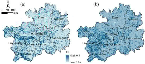 Ecosystem resilience in Guizhou Province in (a) 2010 and (b) 2020.