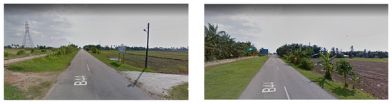 As one of the small towns in the district of Sabak Bernam, Sungai Besar, an area that retains its charms of rural character with traditional Malay architecture of “kampung houses”, vast areas of paddy fields and coconut plantations [44]. Sungai Besar is also well renowned for its homestay programs, which continue to preserve the rural way of life for tourists to enjoy. This study was specifically conducted on the rural road in Sungai Besar, starting from the junction of Jalan Sungai Panjang and Jalan Parit Cabang until the junction of Jalan Sungai Panjang and the rural path near Maktab Rendah Sains Mara Sungai Besar (Figure 1). This rural road is approximately 18.0 km (11.18 mi) long and is rich in scenic views of the rural landscape on both sides of the road.