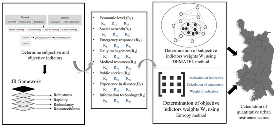 This paper combines resilience assessment indicators’ weighting and quantitative weighting to quantify urban resilience analysis, given that the DEMATEL method can reflect the qualitative intentions of evaluators, and the entropy method can reflect true quantitative data [32].
