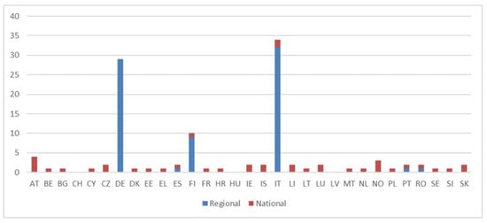 Figure 6). This is in line with the number of metadata records. Germany has 29 spatial data spatial datasets that cover regional territory and zero that cover national territory, Finland has nine datasets that cover regional and one that covers national territory and Italy has thirty-two on the regional and two on the national level. Germany, Finland and Italy have a decentralised approach to cadastral data management. Cadastral information is primarily organised and managed at the regional, state or administrative level rather than at the national level. Each of the 16 federal states in Germany and several administrative regions in Finland and Italy has its own cadastral authorities responsible for maintaining and providing access to cadastral data within their respective jurisdictions. This regional approach allows for greater flexibility and adaptation to local needs and regulations.