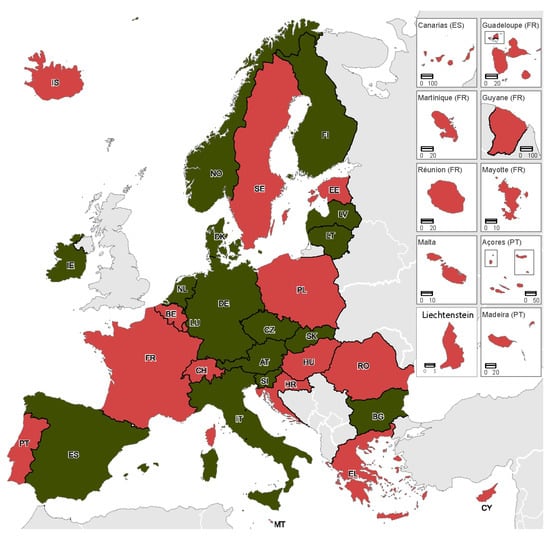 Figure 8 displays the countries (highlighted in green) for which we were able to access and download the data (Austria, Denmark) or where the data were available through various network services such as OGC WMS (Web Map Service) for view and OGC WFS (Web Feature Service) for download. This group includes Greece, Finland, Bulgaria, etc. INSPIRE data are mostly harmonised at the European level, but the specific implementation and availability of cadastral data as WMS and WFS services can vary depending on the specific countries and regions and also the data provider.